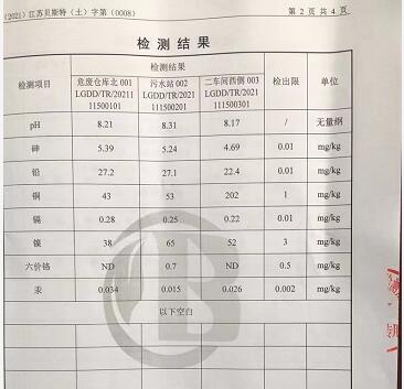 泰州市龍溝電鍍科技有限公司2021年度土壤和地下水檢測數據公示如下:
